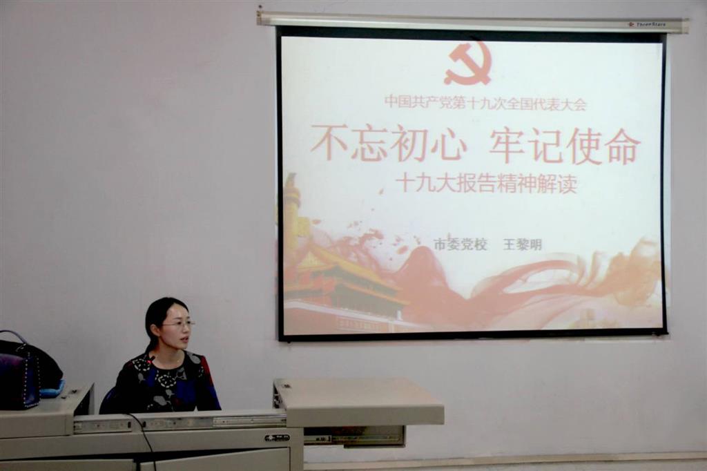 王黎明老師從“新的歷史方位”“新的理論成果”“新的歷史使命”三個方面詳細(xì)解讀了報告精神,重點(diǎn)解讀了習(xí)近平新時代中國特色社會主義思想中的“八個明確”和“十四個堅持”。通過王老師的解讀,與會黨員更透徹地領(lǐng)會了十九大報告的核心內(nèi)容和思想內(nèi)涵。