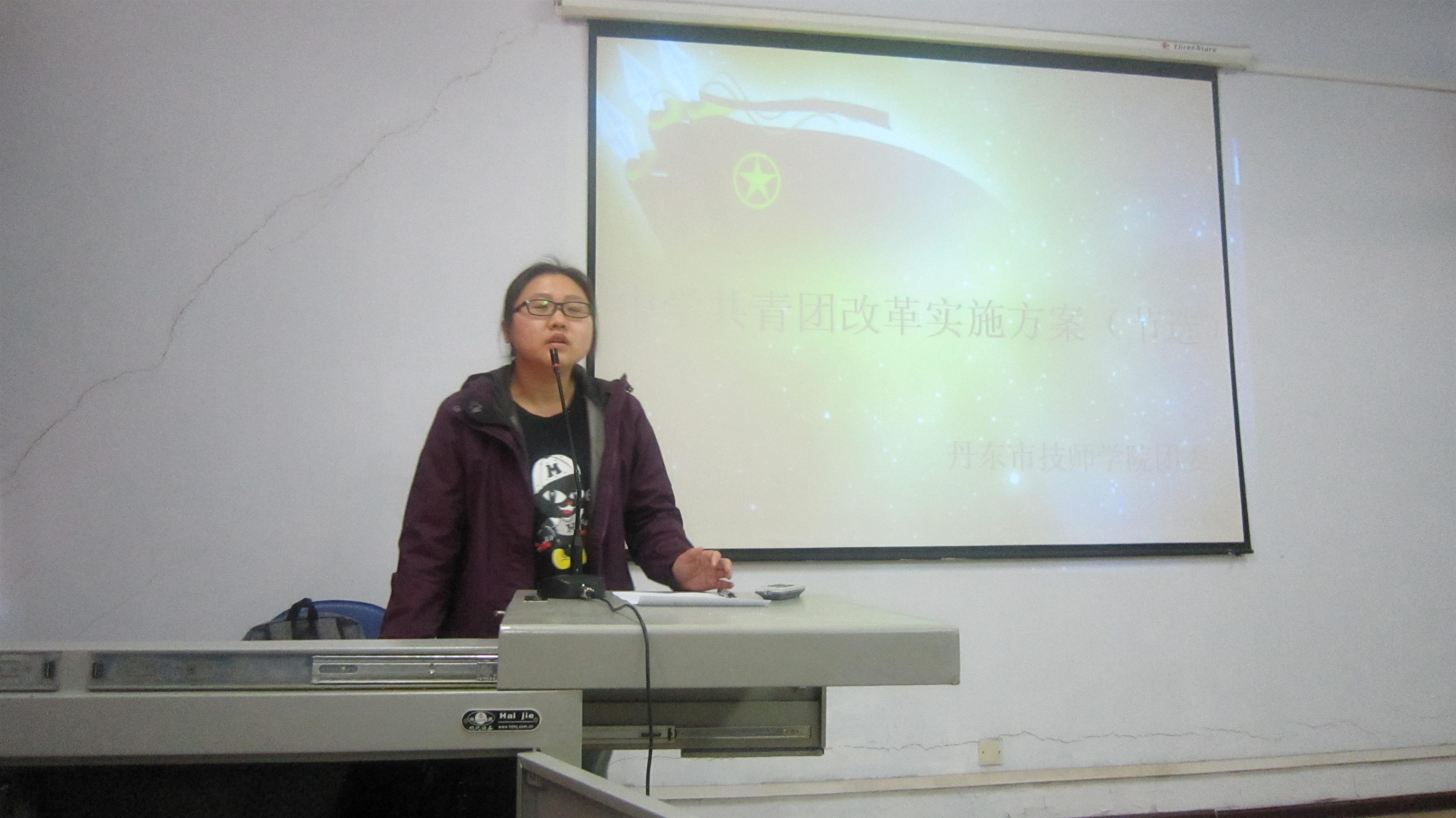 3月14日下午,丹東市技師學(xué)院團(tuán)委組織全校各班級團(tuán)支部書記、班長,在六樓多媒體教室召開本學(xué)期的第一堂團(tuán)課。團(tuán)課由劉寒冰老師講授,劉老師首先向團(tuán)員干部傳達(dá)共青團(tuán)中央下發(fā)的《中學(xué)共青團(tuán)改革實施方案》,同時和大家一起重溫了團(tuán)的歷史、黨團(tuán)關(guān)系、雷鋒精神等相關(guān)知識。整個團(tuán)課氣氛熱烈、效果良好,對團(tuán)員干部樹立正確的人生觀、價值觀起到了積極的作用。